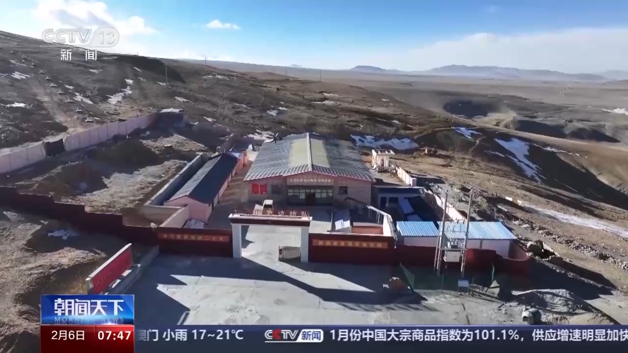 總臺央視記者 何椿:我現在的位置就是查果拉哨所的升旗平臺,海拔超過了5318米,放眼望去,除了遠處的雪山,四周一片荒蕪,唯獨哨所上高高飄揚著的五星紅旗,這面國旗也是查果拉哨所一代代官兵的精神高地。