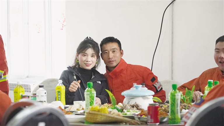 在大隊(duì)里,孫再藏與妻子一起包餃子、貼春聯(lián)、看春晚,和消防員們共同歡度佳節(jié)。除夕夜,孫再藏和妻子手挽著手,在操場(chǎng)上漫步。妻子抬頭看著丈夫,眼中充滿了驕傲和溫柔。她說(shuō):“你們過(guò)年還挺熱鬧的,好好站崗值班,家里不用擔(dān)心,有我呢?!?/p>