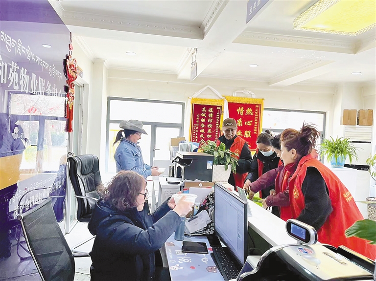 拉薩市城關(guān)區(qū)納金街道林瓊社區(qū)將愛心湯圓送到堅(jiān)守在一線的工作人員手中。記者 格桑倫珠 攝