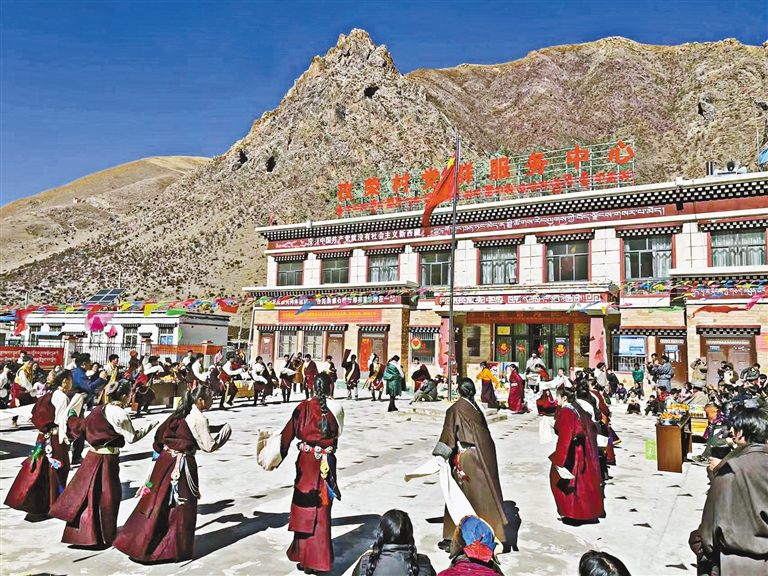 昌都市貢覺縣孜榮村群眾載歌載舞歡度元宵。記者 貢秋曲措 攝
