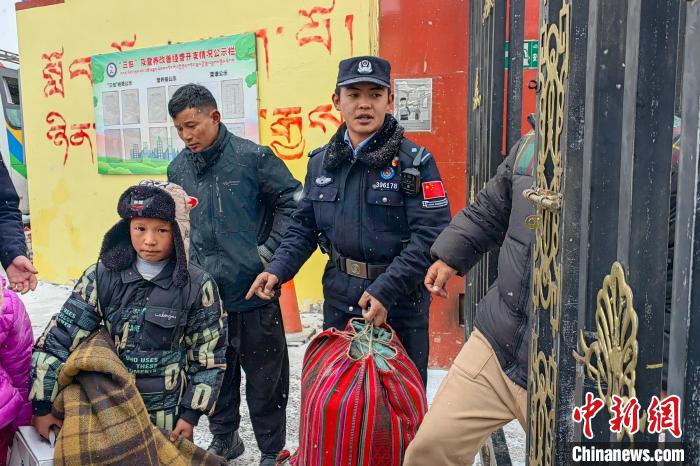 西藏阿里日土移民管理警察護送學(xué)生返校。羅發(fā)燕 攝