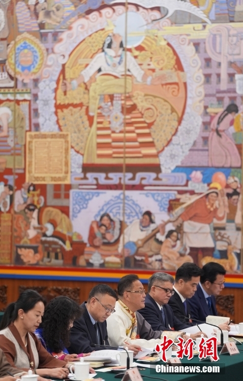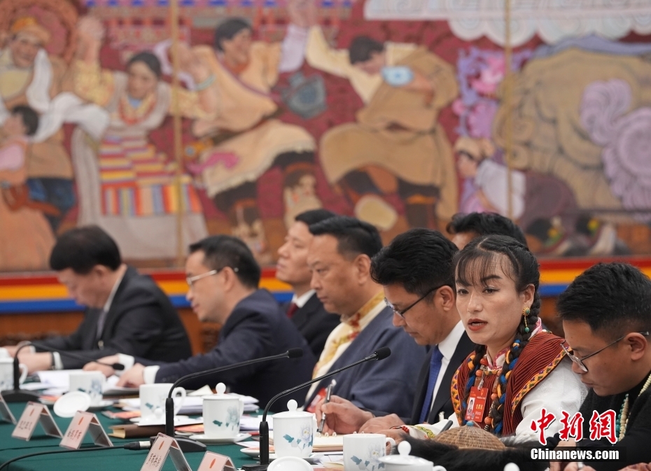 3月6日,出席十四屆全國人大二次會(huì)議的西藏代表團(tuán)在北京人民大會(huì)堂西藏廳舉行開放團(tuán)組會(huì)議,審議政府工作報(bào)告并回答記者提問。