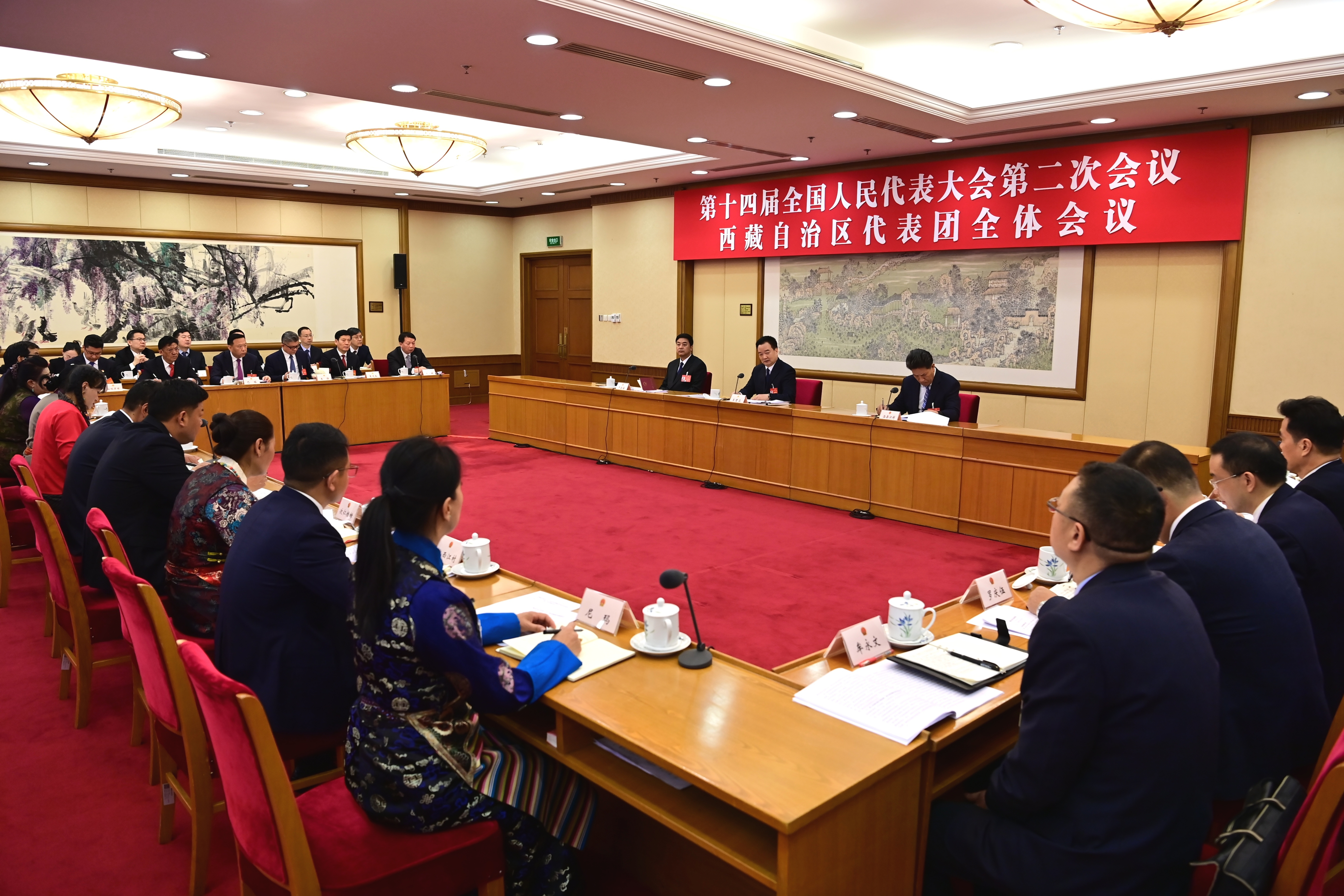 西藏代表團(tuán)審議政府工作報告,這是會議現(xiàn)場。記者 旦增西旦 攝