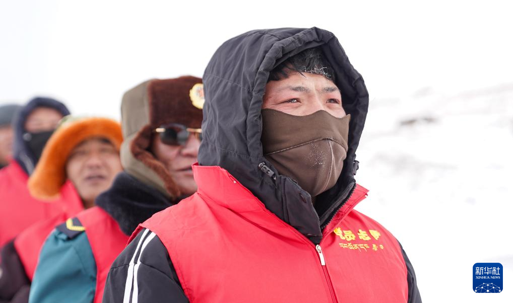 守護長江源的瑪曲鄉(xiāng)長江源環(huán)保志愿隊隊員(2月2日攝)。新華社記者 晉美多吉 攝