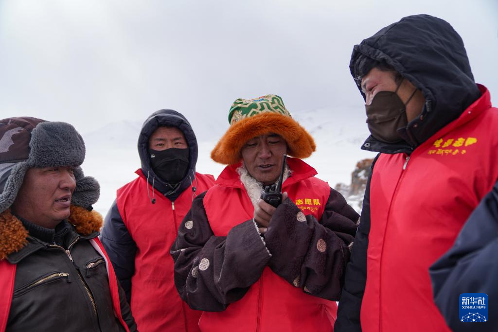瑪曲鄉(xiāng)長江源環(huán)保志愿隊隊員在巡邏時通過對講機互相聯(lián)系(2月2日攝)。新華社記者 晉美多吉 攝