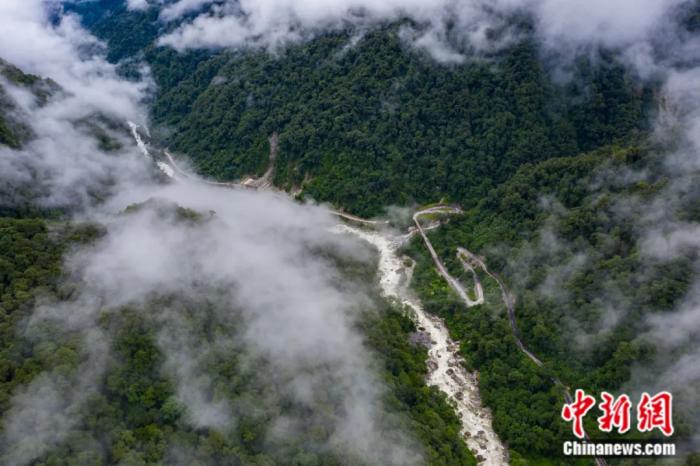 航拍首條進入西藏墨脫的公路扎墨公路。何蓬磊 攝