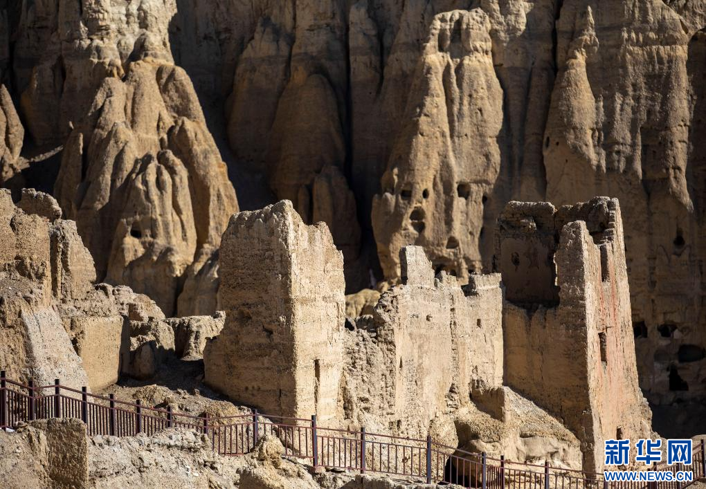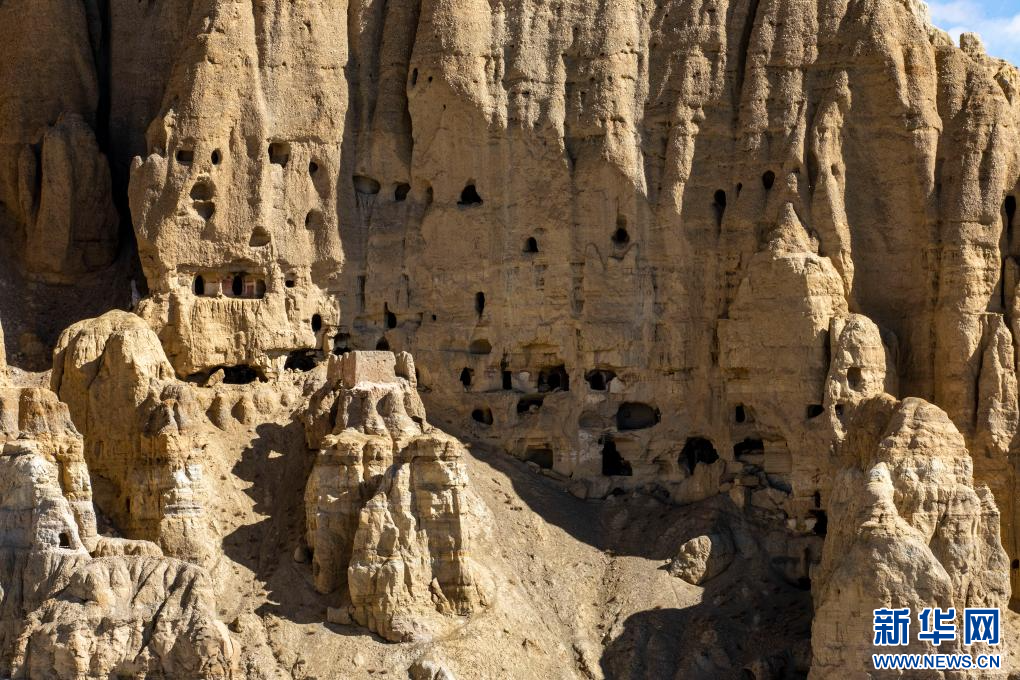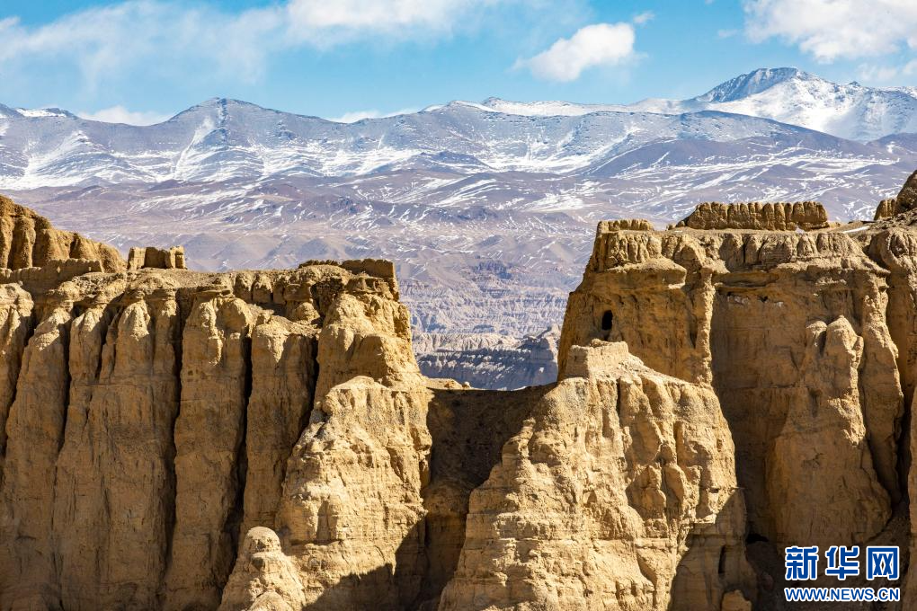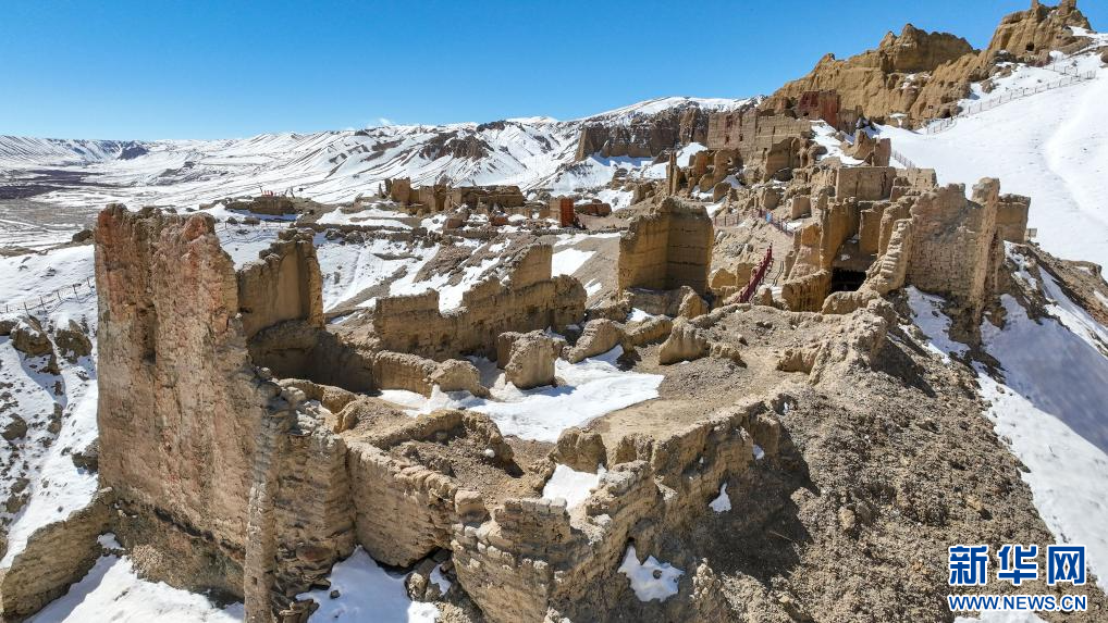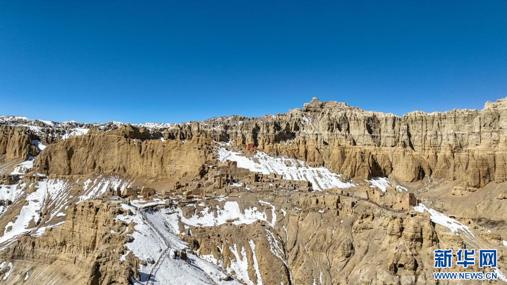 達(dá)巴遺址位于西藏阿里地區(qū)札達(dá)縣境內(nèi),其主要建筑分布在兩座山脊之上,整個遺址共有洞穴200余處,且有獨立的碉樓、寺廟建筑遺跡、居民窯洞等建筑,在白雪的映襯下,顯得格外雄渾而神秘。
