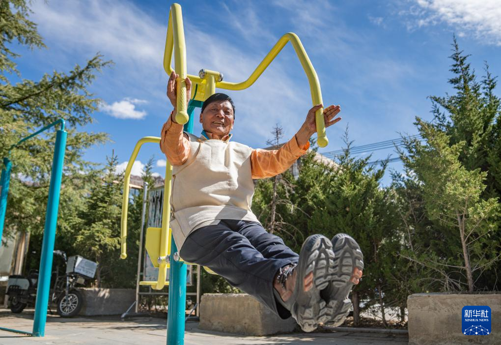 2024年3月28日 普次仁在小區(qū)內鍛煉身體(3月23日攝)。新華社記者 丁增尼達 攝