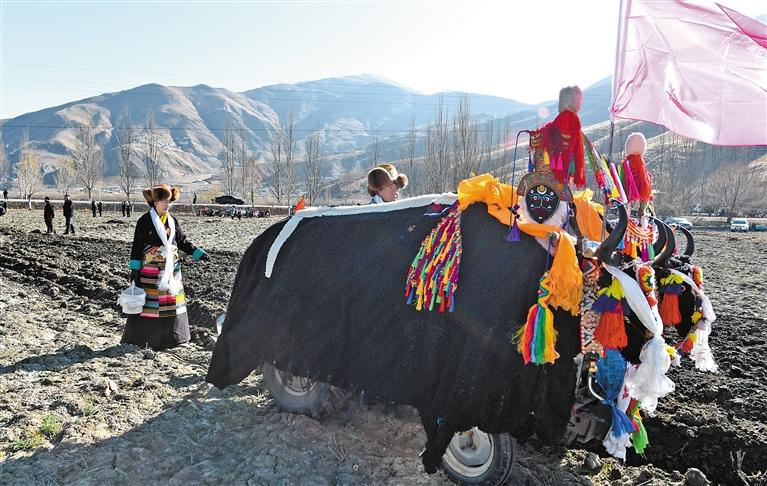 喝完青稞粥,多吉曲珍全家一起出動(dòng)去社區(qū)高標(biāo)準(zhǔn)農(nóng)田參加春耕儀式。