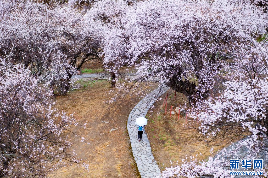 4月3日,林芝市巴宜區(qū)嘎拉村盛開的桃花。新華網(wǎng) 旦增努布 攝