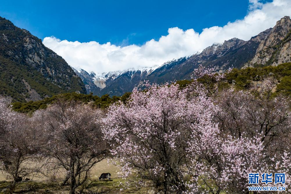 4月5日,在嘉黎縣尼屋鄉(xiāng)境內(nèi)盛開(kāi)的桃花。新華網(wǎng) 旦增努布 攝