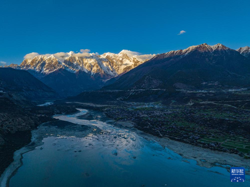 西藏林芝市米林市索松村是欣賞南迦巴瓦峰景觀的最佳位置之一。這里面向南迦巴瓦峰,腳下是蜿蜒的雅魯藏布江。林芝市第二十一屆桃花旅游文化節(jié)期間,雅魯藏布江邊的桃花次第盛開,與雪山、大江相襯,獨(dú)特的景色吸引著各地游客慕名而來,共赴一場“桃花之約”。