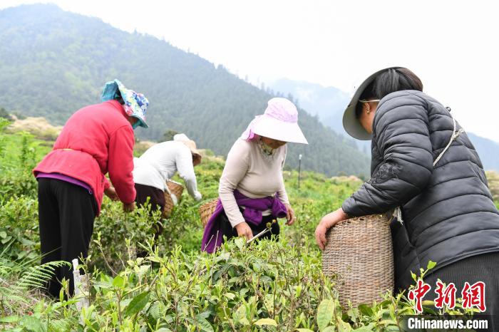 4月21日,西藏林芝市察隅縣下察隅鎮(zhèn)嘎堆嘎美村村民忙著采摘新鮮茶葉。據(jù)悉,察隅縣利用獨特的氣候地理條件,2018年起開始大力發(fā)展茶產業(yè)。目前,察隅縣茶葉種植面積約2.3萬畝,年產值約2000萬元(人民幣,下同),村民通過采摘茶葉,每人每天收入160元,茶葉為當?shù)剜l(xiāng)村振興和經(jīng)濟發(fā)展提供了重要保障。下察隅冬暖夏熱,常年濕潤多雨,年降雨量達1000毫米,年平均氣溫17℃,年日照時數(shù)為1680小時,適合種植各類經(jīng)濟作物。