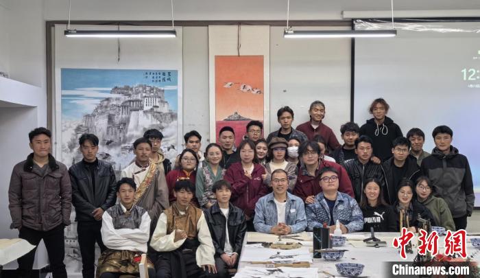 西藏大學藝術(shù)學院師生在《國畫寫意》課程落幕后合影留念。西藏大學藝術(shù)學院供圖