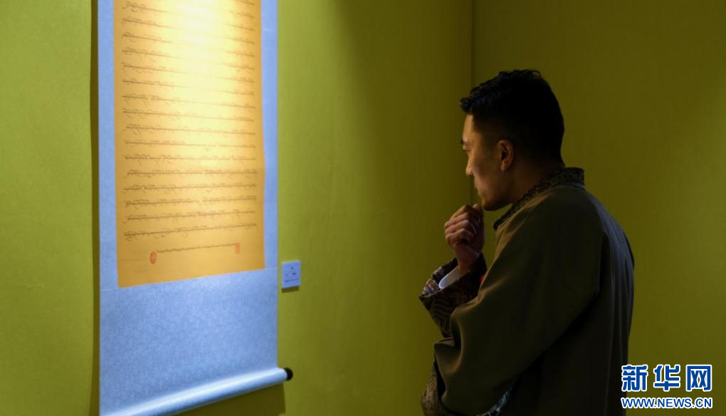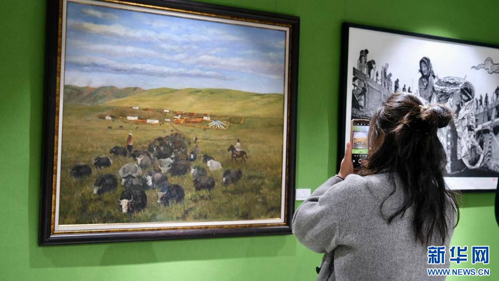 4月28日,第五屆民族團結(jié)書法、美術(shù)、攝影、微視頻大賽作品展現(xiàn)場。新華網(wǎng) 旦增努布 攝