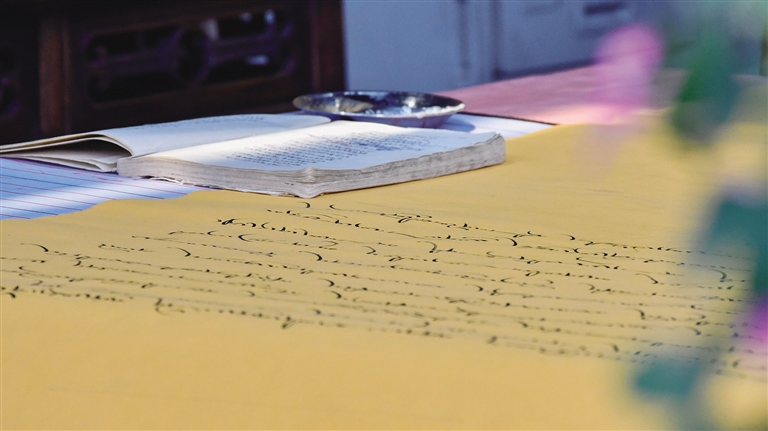 因書法結(jié)緣 她師從達(dá)瓦次仁走上傳承之路