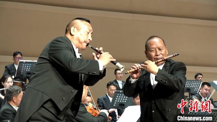 圖為在音樂會上嗩吶、笛子與樂隊演奏。貢桑拉姆攝