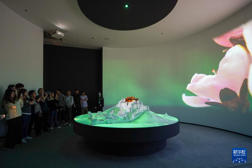 5月11日,觀眾在展出現(xiàn)場參觀拍攝布達(dá)拉宮模型。新華社記者 李博 攝