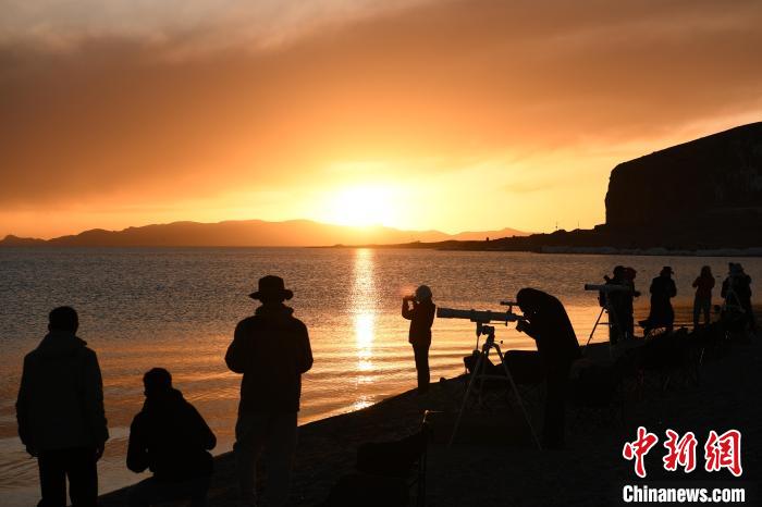 體驗結束后,邀請嘉賓就座開始觀測星空,由西藏天文歷算有關專家簡要為游客講解天文歷算及星空觀象相關知識。現(xiàn)場擺放10臺星空觀測設備,供現(xiàn)場游客自行觀察納木錯的星空。