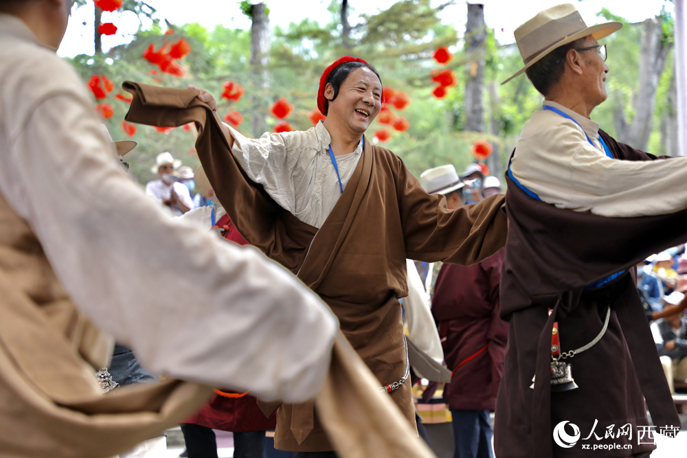 拉薩布達(dá)拉宮腳下的宗角祿康公園民俗活動區(qū)里,市民們在這里載歌載舞。人民網(wǎng)記者 次仁羅布攝