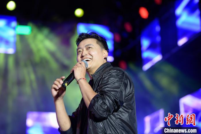 圖為歌手羅布桑珠正在演唱歌曲《美麗星球》。貢嘎來松 攝