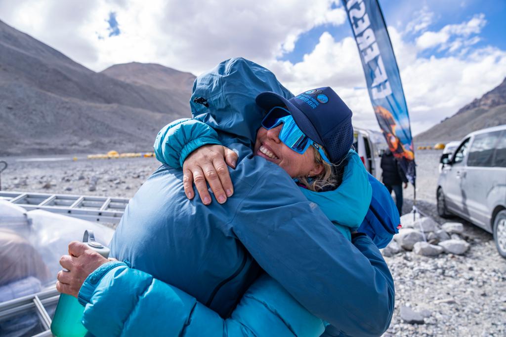 西芙·哈爾斯塔跟自己的高山向?qū)肀В?月24日攝)。新華社記者 孫非 攝