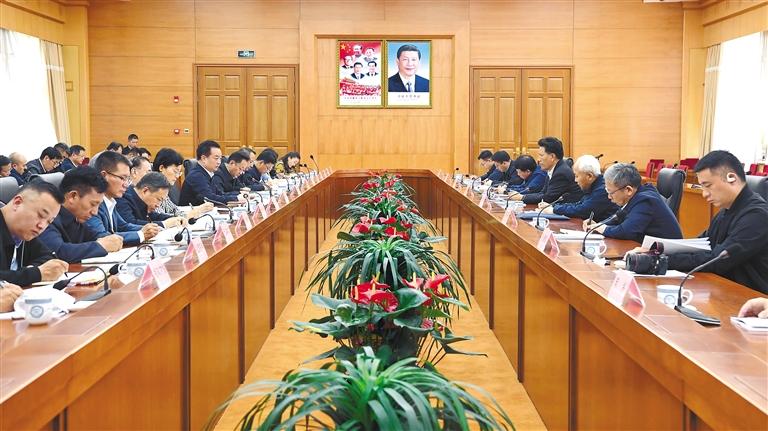 日前,自治區(qū)黨委書記王君正在拉薩與全國人大常委會副委員長洛桑江村率隊(duì)的全國人大常委會調(diào)研組一行座談。這是座談現(xiàn)場。 本報(bào)記者 李洲 攝