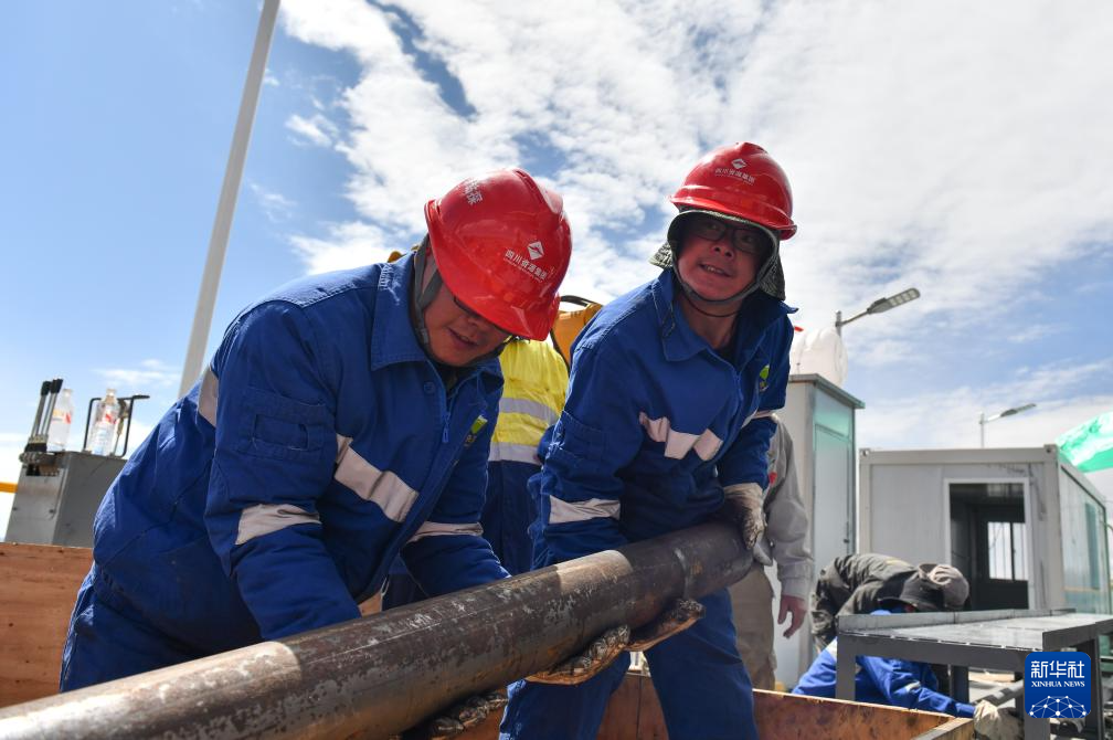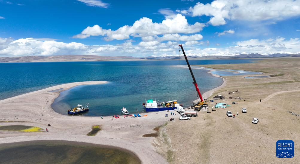 鉆探技術人員架設湖泊鉆探平臺(6月1日攝)。新華社記者 晉美多吉 攝
