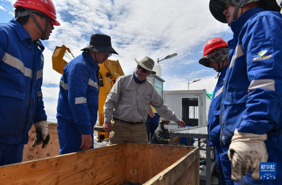 中外技術人員在架設湖泊鉆探平臺(6月1日攝)。新華社記者 晉美多吉 攝