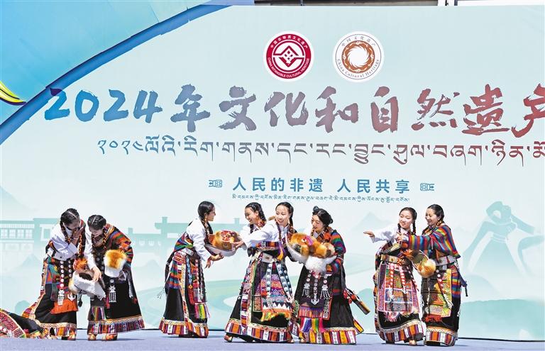 8日上午,自治區(qū)2024年“文化和自然遺產(chǎn)日”主場活動在日喀則市舉行,包括“非遺歌舞專場演出”“非遺展示展銷”“非遺獻禮·電商助力直播帶貨”“鑄牢中華民族共同體意識·夏魯文物特展”等。來自各有關部門、地市代表,國家級非物質(zhì)文化遺產(chǎn)代表性項目展演人員齊聚珠峰文化旅游創(chuàng)意產(chǎn)業(yè)園區(qū),用天籟之音、特色舞蹈禮贊新時代,傳承弘揚中華優(yōu)秀傳統(tǒng)文化,共享文化遺產(chǎn)保護和發(fā)展成果。除日喀則主會場系列宣傳活動外,全區(qū)還將陸續(xù)舉辦上百場豐富多彩的線上線下活動。