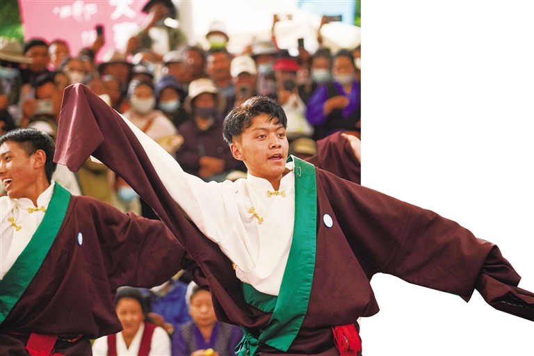 “我們幾個朋友退休后就加入了鍋莊舞健身隊伍,每天清晨大家不約而同地來到宗角祿康公園,以激昂的鍋莊開始一天的生活,這樣既能鍛煉身體,又能愉悅心情,大家都特別享受這種狀態(tài)。”觀眾拉姆次仁說。