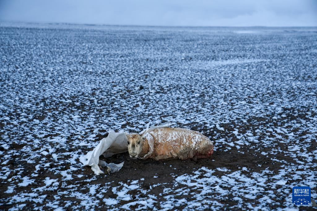 6月15日清晨,在西藏那曲市尼瑪縣境內(nèi)的羌塘國家級自然保護區(qū)“無人區(qū)”深處,受傷的母藏羚羊已經(jīng)死去。新華社記者 旦增尼瑪曲珠 攝