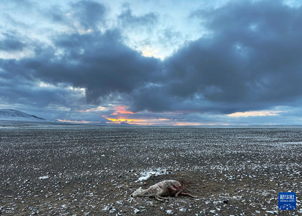 6月14日,西藏那曲市尼瑪縣境內(nèi)的羌塘國家級自然保護區(qū)“無人區(qū)”深處,在野生動物專業(yè)管護隊臨時宿營地附近,一只在藏羚羊遷徙路上等候已久的野狼撲向遷徙的藏羚羊群中一只懷孕的母羊,咬向肚子和脖子。激烈掙扎的藏羚羊掙脫后,靠著最后的一點力氣跑向野保隊營地,野狼不敢靠近營地而不得不離去。野保隊員看到在風雪中掙扎的母羊,把它運回營地進行救助。但由于傷勢太重,肚皮被咬開且內(nèi)臟嚴重受損,野保隊員只能將母羊的肚皮縫上之后,按照慣例將受傷的母羊抬放在羌塘大草原。