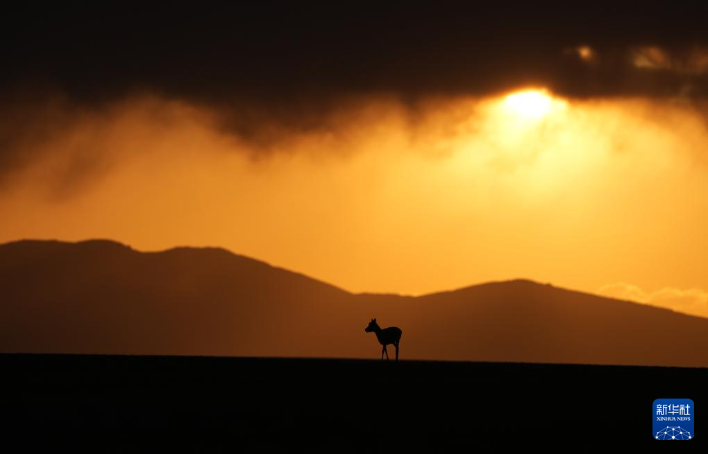 夕陽下待產(chǎn)的藏羚羊(6月16日攝)。新華社記者 費茂華 攝