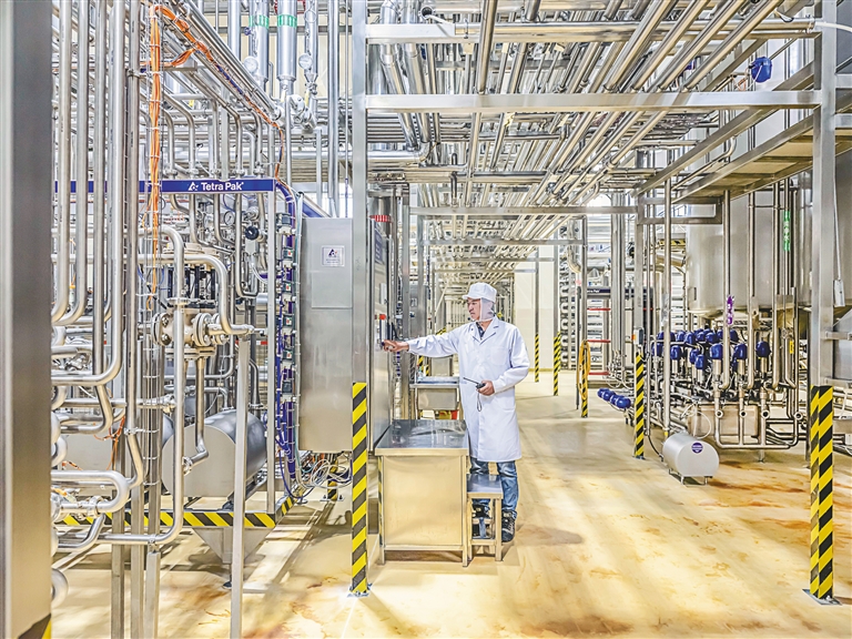 工作人員在北京市援建的西藏凈土乳業(yè)車間工作。