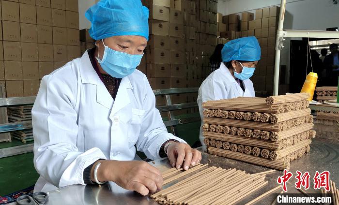 “我們農(nóng)閑時(shí)就會(huì)來(lái)這里制作藏香?!睅孜宦耦^工作的婦女不善言談,但她們數(shù)線香、捆藏香流程十分嫻熟,她們足不出村實(shí)現(xiàn)就業(yè)增收。