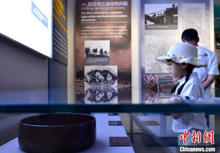 7月1日,《勿忘國(guó)恥 振興中華——日本侵略中國(guó)東北史實(shí)展》在位于拉薩的西藏博物館開展。該展覽由西藏自治區(qū)文物局主辦,西藏博物館、偽滿皇宮博物院共同承辦。圖為觀眾正在觀看展覽中的展品。中新社記者 李林 攝