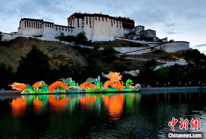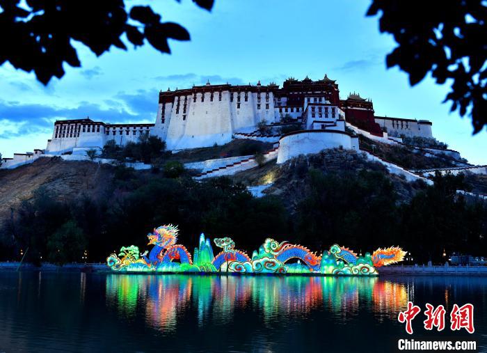 7月1日晚,布達拉宮腳下的宗角祿康公園“點亮拉薩—秦淮燈會”亮燈。燈會設17個點位、50個燈組,將持續(xù)至9月30日。圖為宗角祿康公園里的龍燈。中新社記者 李林 攝