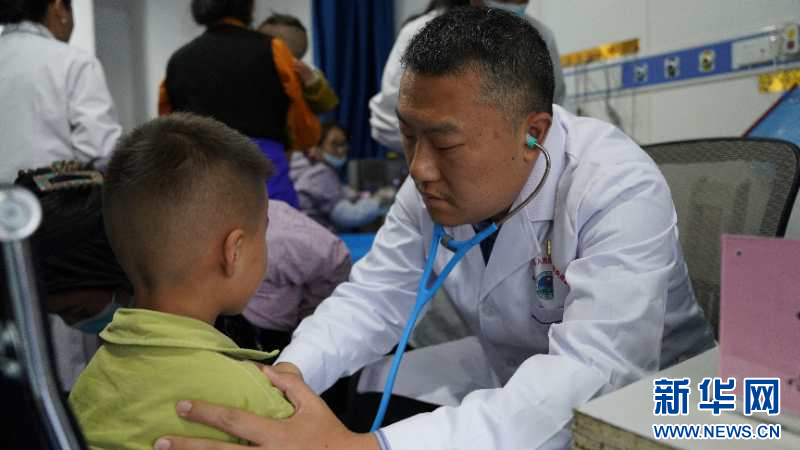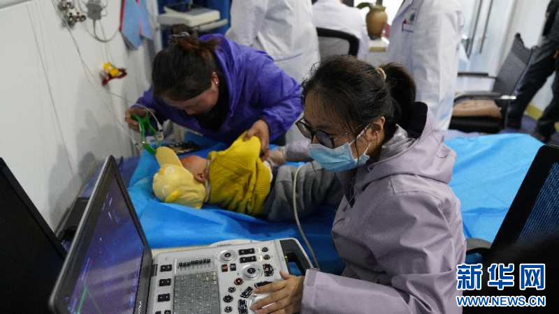 “心佑工程”團(tuán)隊(duì)成員正在對(duì)疑似先天性心臟病患兒進(jìn)行心超檢查(新華社發(fā))