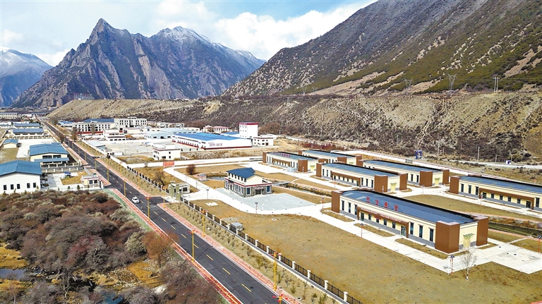 由廣東助力建設(shè)的工布江達縣藏豬產(chǎn)業(yè)園鳥瞰圖。