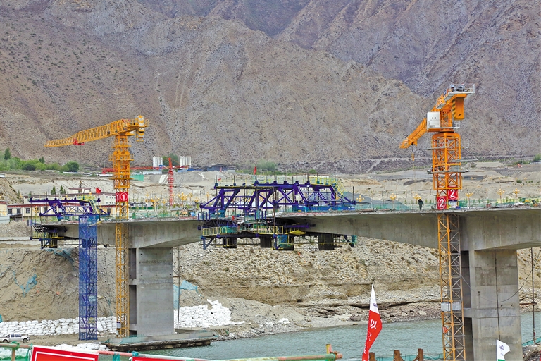 建設(shè)中的廣東援藏項目—朗縣惠州大橋。