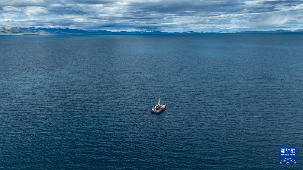7月11日拍攝的納木錯(cuò)水上鉆探平臺(tái)(無人機(jī)照片)。新華社記者 晉美多吉 攝