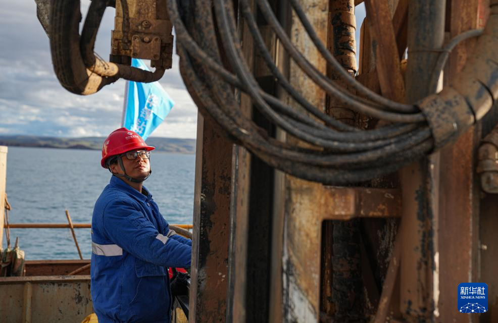 在海拔超過4700米的西藏納木錯(cuò),湖泊巖芯鉆探工作正在開展中。