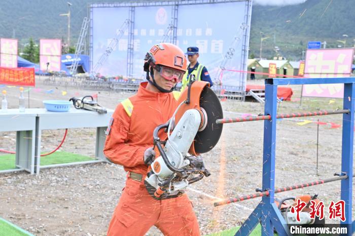 圖為地震救援專業(yè)“兵王”許沖正在操作內(nèi)燃無齒鋸。西藏森林消防總隊供圖