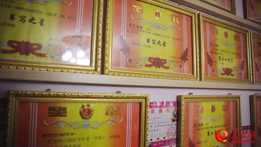 達瓦堅參家墻上的獎狀。人民網記者 趙晨攝