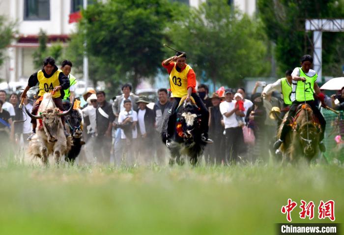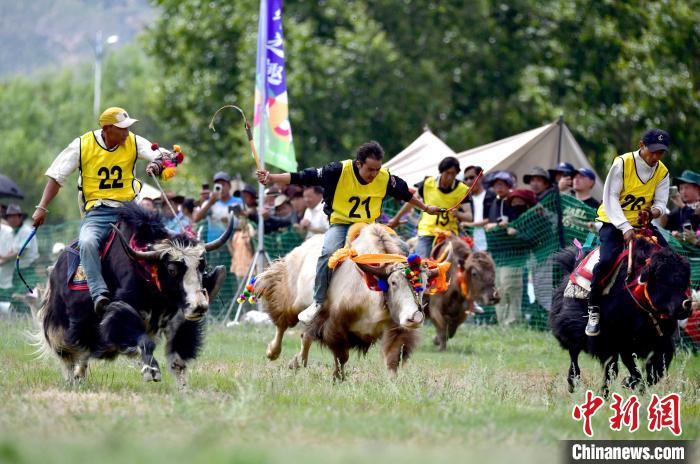 牦牛被譽(yù)為“高原之舟”,賽牦牛是藏族的傳統(tǒng)體育項(xiàng)目。比賽現(xiàn)場,騎手們精神抖擻,待于起跑線;發(fā)令后即馭牛疾奔,以先到終點(diǎn)者為勝。賽場上競爭激烈;賽場外民眾也為騎手們加油歡呼,比賽熱鬧非凡。
