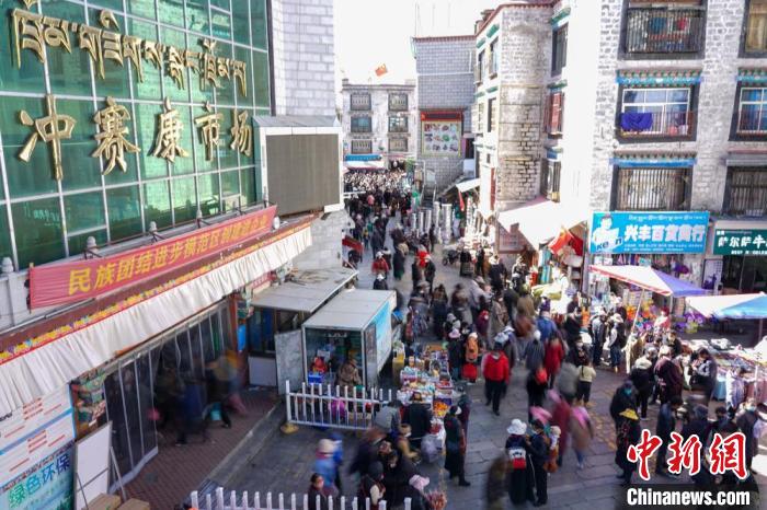 資料圖為拉薩沖賽康市場(chǎng)周邊人流、商戶云集,該市場(chǎng)是西藏最大的傳統(tǒng)百貨市場(chǎng)之一。