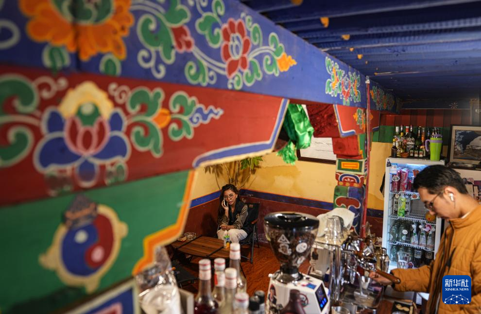位于八廓南街的貢桑孜大院,擁有百年歷史的藏式樓房,如今煥發(fā)出新的生機。走進大院,一樓的西北角,一間藏式裝修風格的咖啡館內(nèi),顧客穿梭其中,咖啡香氣四溢,讓這座古老的大院充滿活力。
