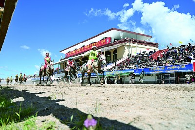 據(jù)了解,今年主辦方從青海等地邀請了特色高原馬種前來展示?;顒蝇F(xiàn)場,記者看到,騎手們身著民族服飾,英姿颯爽;駿馬裝飾五色綢帶,躍躍欲試;觀眾扶老攜幼,笑逐顏開。今年的賽馬節(jié)還新增了馬上刀術(shù)、馬上烏爾朵、騎馬射擊、騎馬拾哈達(dá)等四項賽馬競技活動。