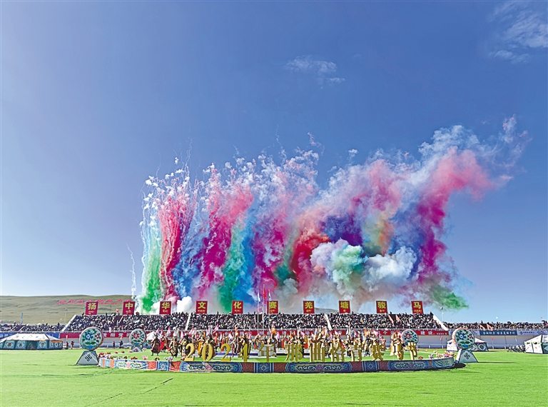 圖為那曲恰青賽馬節(jié)暨第三屆“鄉(xiāng)村振興 那曲奮進”活動開幕式場景。